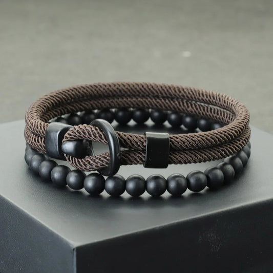 Noter 2Pcs Men’s Bracelet Set – Double Layer Rope & 6mm Black Onyx Bead Bracelet